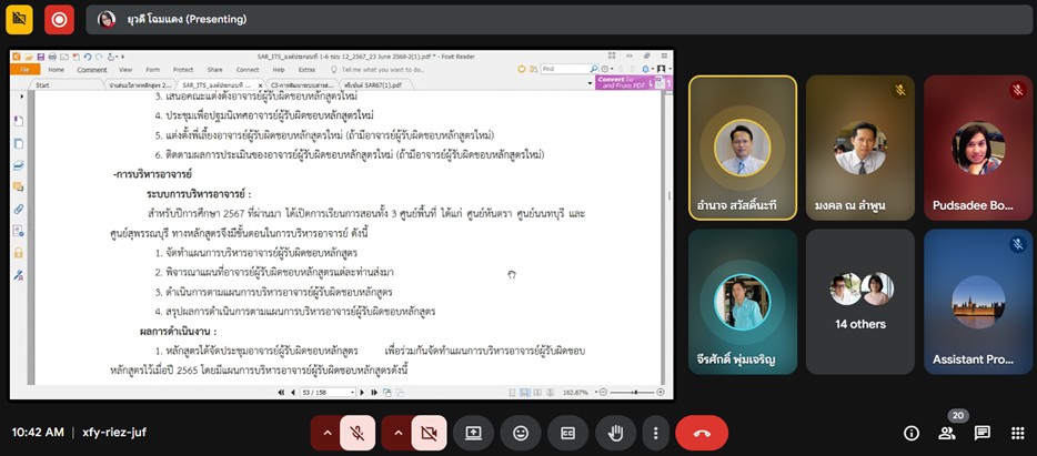 วันพฤหัสบดีที่ 3 กรกฎาคม พ.ศ. 2568 เวลา 08.30 น . เป็นต้นไป หลักสูตรเทคโนโลยีสารสนเทศและเศรษฐกิจดิจิทัล คณะวิทยาศาสตร์และเทคโนโลยี เข้ารับการตรวจประเมินคุณภาพการศึกษาภายในระดับหลักสูตร ประจำปีการศึกษา 2567 ในรูปแบบออนไลน์ โดยมีผู้ช่วยศาสตราจารย์พินทุสร ปัสนะจะโน อาจารย์ยุวดี โฉมแดงและอาจารย์จักรพันธ์ สาตมุณี ประธานหลักสูตรและกรรมการผู้รับผิดชอบหลักสูตรทั้ง 3 ศูนย์พื้นที่ เพื่อให้เป็นไปตามเกณฑ์ประกันคุณภาพการศึกษาภายในตามตัวบ่งชี้ ซึ่งในการตรวจครั้งนี้ได้รับเกียรติจาก รองศาสตราจารย์ ดร.อำนาจ สวัสดิ์นะที เป็นประธานในการตรวจ ผู้ช่วยศาสตราจารย์ ดร.ผุสดี บุญรอด กรรมการ ผู้ช่วยศาสตราจารย์มงคล ณ ลำพูน กรรมการและเลขานุการ และอาจารย์จิตตภู พูลวัน ผู้ช่วยเลขานุการ