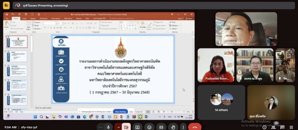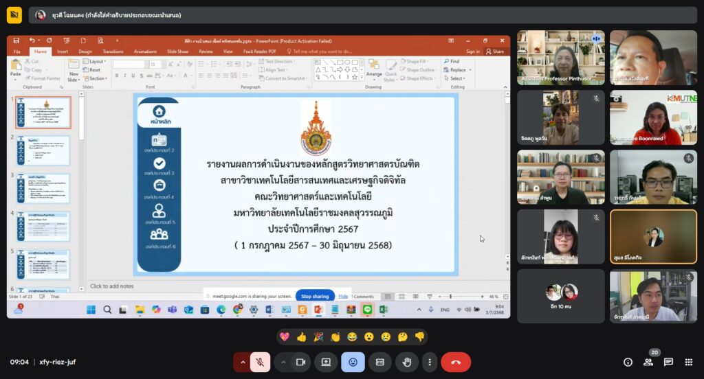โครงการปัจฉิมและนำเสนองานสหกิจศึกษา คณะวิทยาศาสตร์และเทคโนโลยี ประจำปีการศึกษา 2569 (ผ่านระบบออนไลน์ Google Meet)