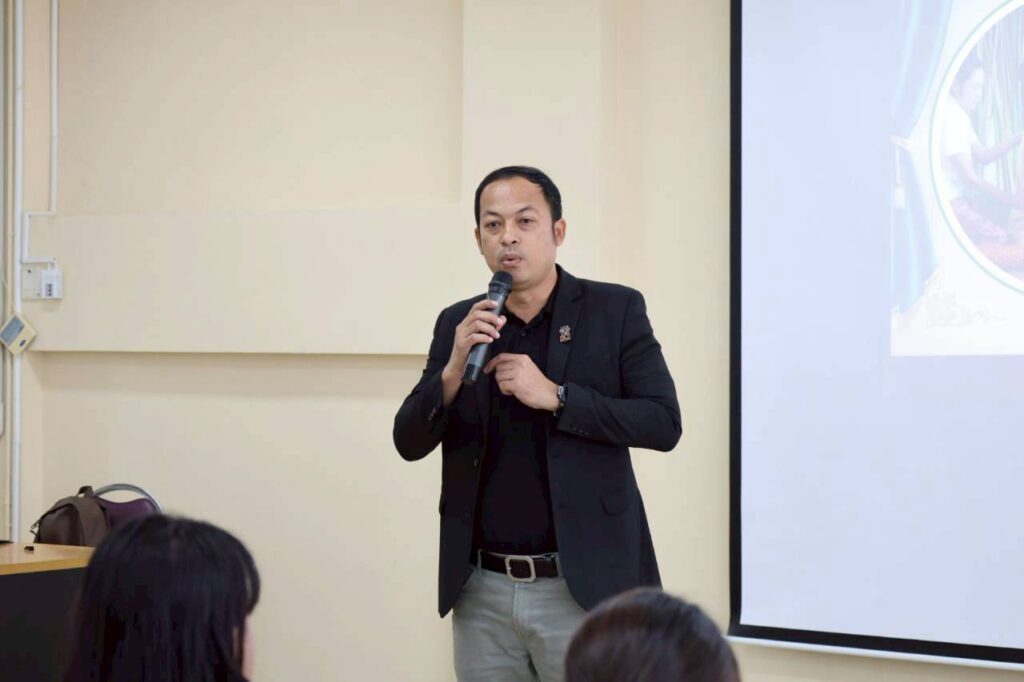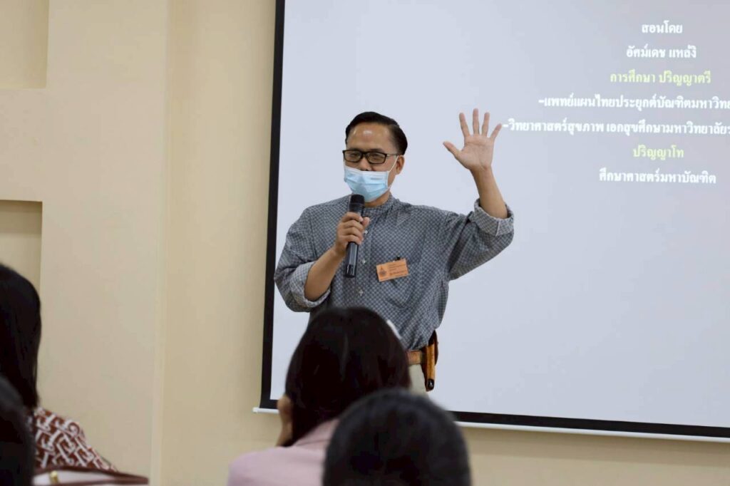 การอบรมครั้งนี้ได้รับเกียรติจาก อาจารย์อัศม์เดช แหล่งิ แพทย์แผนไทยประยุกต์ และเจ้าของธุรกิจคลินิกการแพทย์แผนไทยประยุกต์ เป็นวิทยากรถ่ายทอดความรู้และประสบการณ์อย่างใกล้ชิด โดยมี อาจารย์ขวัญชนก เทพปัน อาจารย์ประจำคณะวิทยาศาสตร์และเทคโนโลยี เป็นผู้รับผิดชอบโครงการ ทั้งนี้ กลุ่มเป้าหมายของกิจกรรมประกอบด้วยบุคลากรและนักศึกษาหลักสูตรสาธารณสุขศาสตร์บัณฑิต จำนวนทั้งสิ้น 22 คน