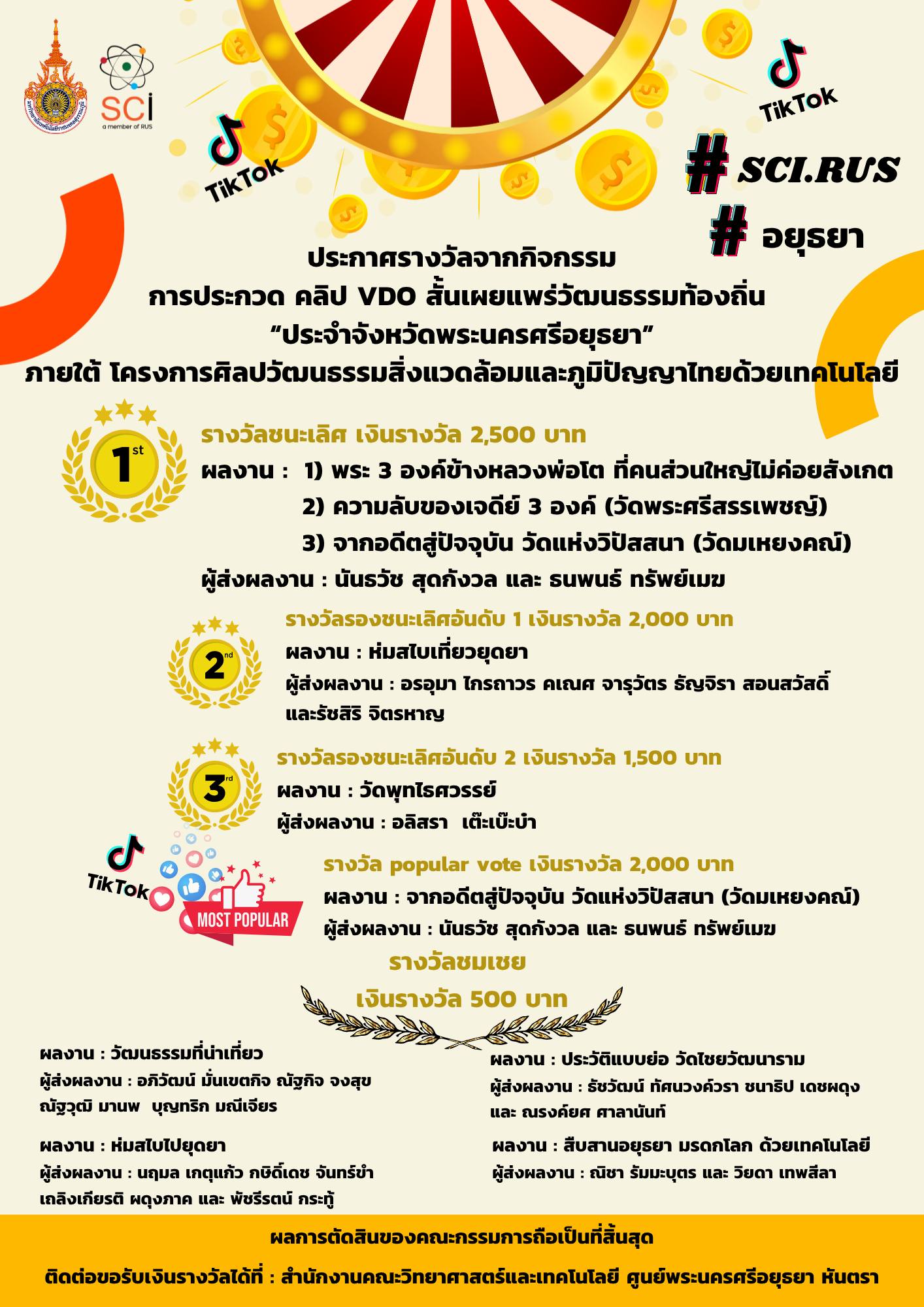ขอแสดงความยินดีกับผู้ได้รับรางวัล การประกวดคลิปวิดีโอสั้นเผยแพร่วัฒนธรรมท้องถิ่น “ประจำจังหวัดพระนครศรีอยุธยา” ![]()
