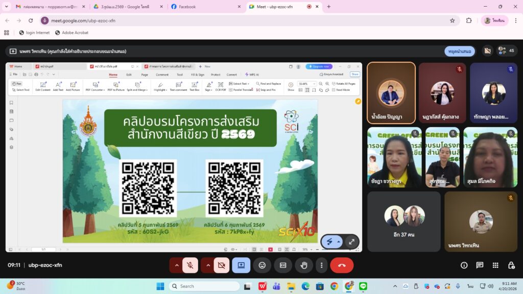 ประชุมคณะทำงานโครงการสำนักงานสีเขียว (Green Office) ศูนย์พระนครศรีอยุธยา หันตรา ครั้งที่ 4 ประจำปีงบประมาณ 2569 ( ในรูปแบบออน์ไลน์ )