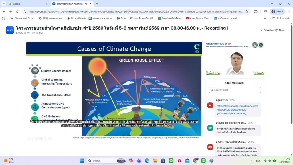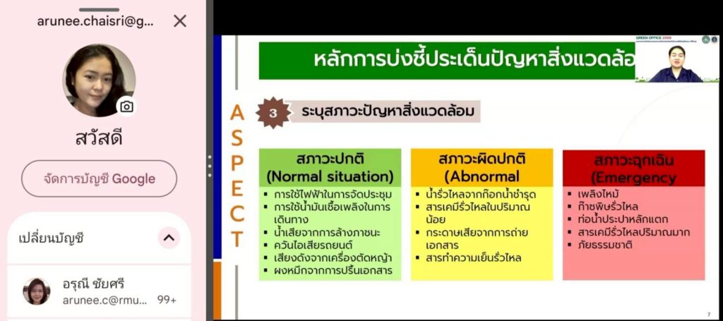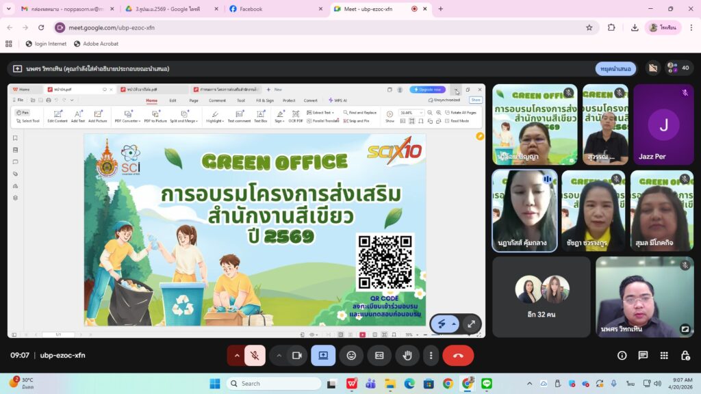 การอบรมในรูปแบบออนไลน์ครั้งนี้มีคณาจารย์ บุคลากร และเจ้าหน้าที่คณะวิทยาศาสตร์และเทคโนโลยี เข้าร่วมการอบรมโครงการส่งเสริมสำนักงานสีเขียว (Green Office) ประจำปี 2569 ระหว่างวันที่ 20 – 21 เมษายน 2569 จำนวน 54 คน โดยมี ผศ.น้ำอ้อย ปัญญา รองคณบดีคณะวิทยาศาสตร์และเทคโนโลยี กำกับดูแลการอบรมฯ และให้คำปรึกษาในการเตรียมข้อมูลในส่วนที่เกี่ยวข้อง และเป็นไปตามเกณฑ์มาตรฐานกับนโยบายการเป็นมหาวิทยาลัยสีเขียว